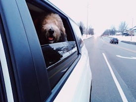 Happy pups enjoying safe, comfy rides across Indy with Canine Carriage.